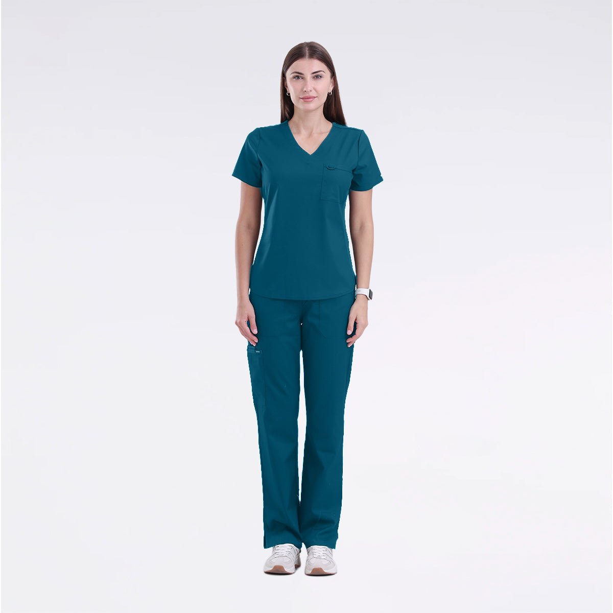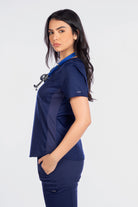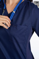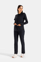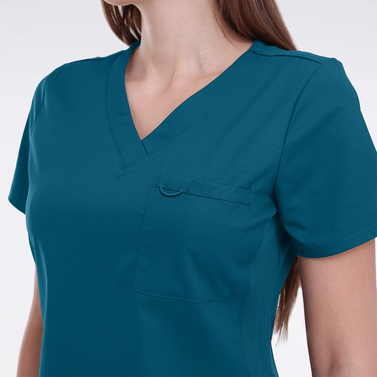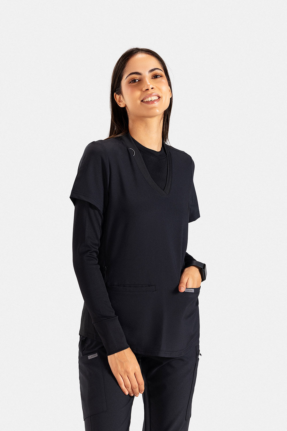 توب نسائي من Landau ProFlex يتميز بياقة على شكل V وخطوط لمظهر أنيق. يأتي بألواح جانبية محبوكة لتوفير الراحة أثناء الحركة طوال اليوم. يحتوي على جيب صدر أمامي وجيب إضافي في الجانب الخلفي لحمل المزيد من الأغراض. يمكن ارتداؤه غير مطوي، مطوي جزئيًا، أو مطوي بالكامل لتناسب كل الأذواق.
