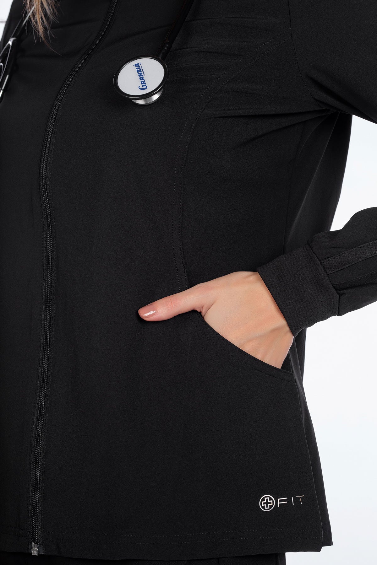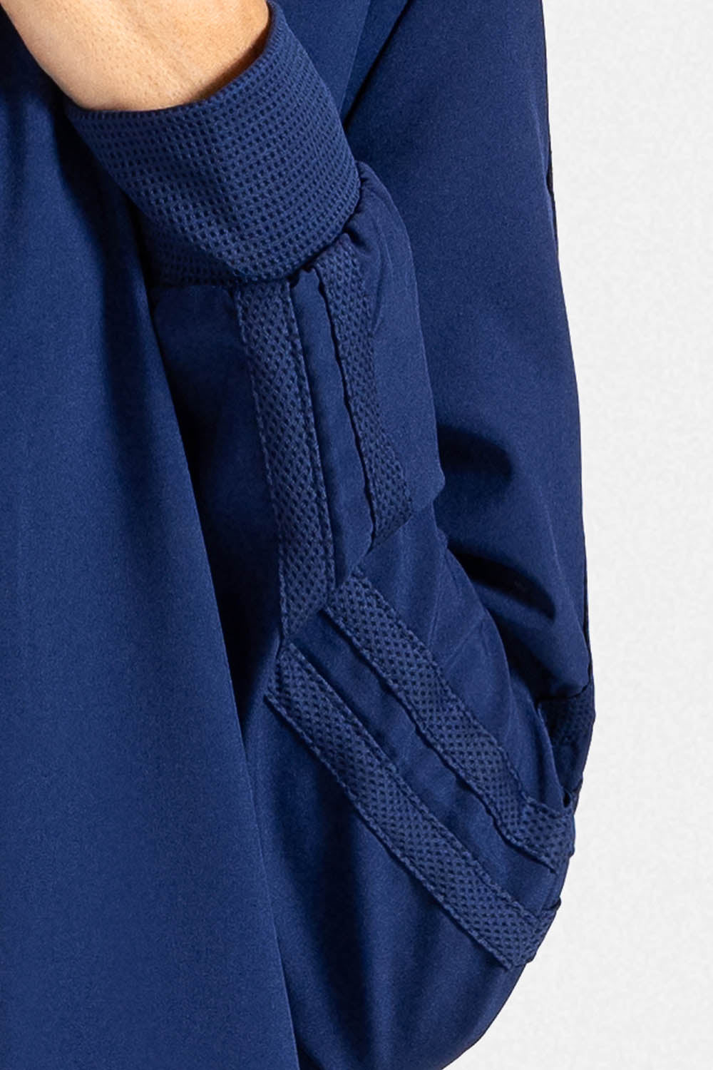 جاكيت Fit النسائي المصمم بواسطة ماركة White Cross ذات طراز رياضي ستبقيك دافئًا مع الحفاظ على أناقتك في نفس الوقت، له جيبين أماميين مخفية وسحاب وشريط من القماش المزخرف على طول الكم ، و ايضاً فتحات تهوية بالخلف .