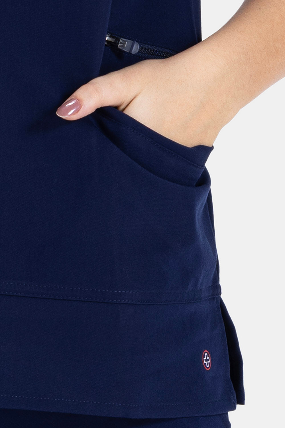 قميص V-tess النسائي المصمم بواسطة ماركة White Cross يتميز بالتصميم العصري ، وشكل رقبة على حرف V ، قماشه الممتد يجعلك تشعر براحة أكبر وهناك فتحات جانبية، و جيبين جانبيين للتهوية و جيبين آخرين للتخزين و جيب واحد بسحاب خارجي .