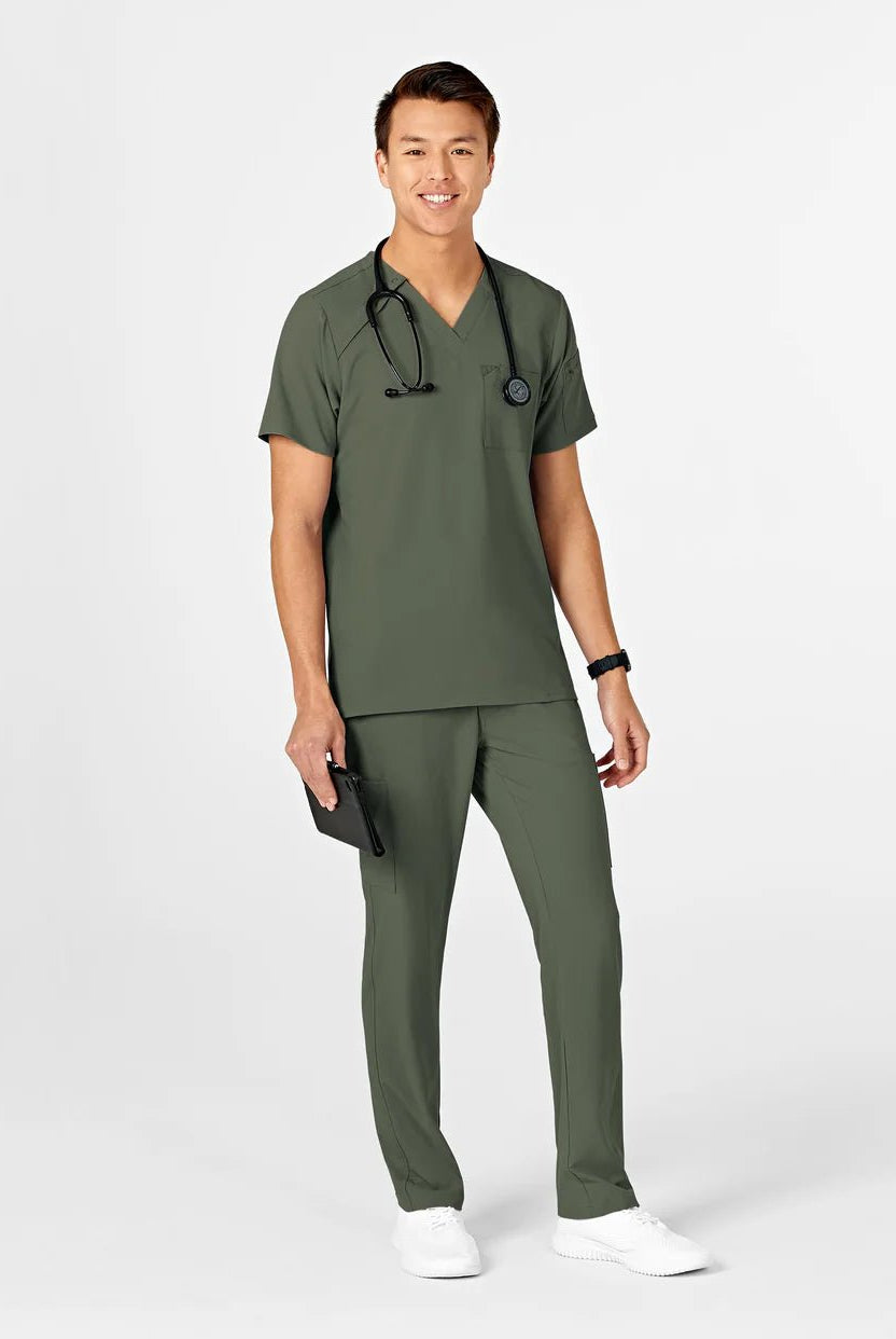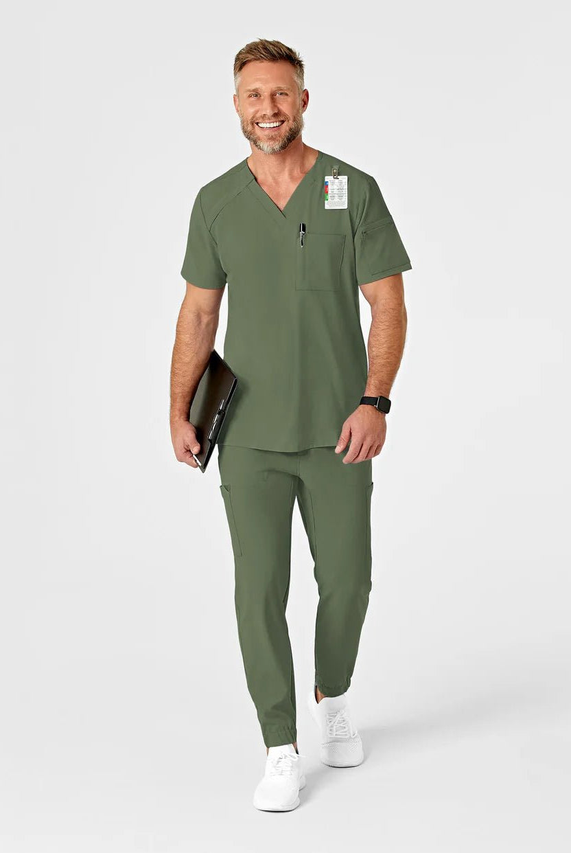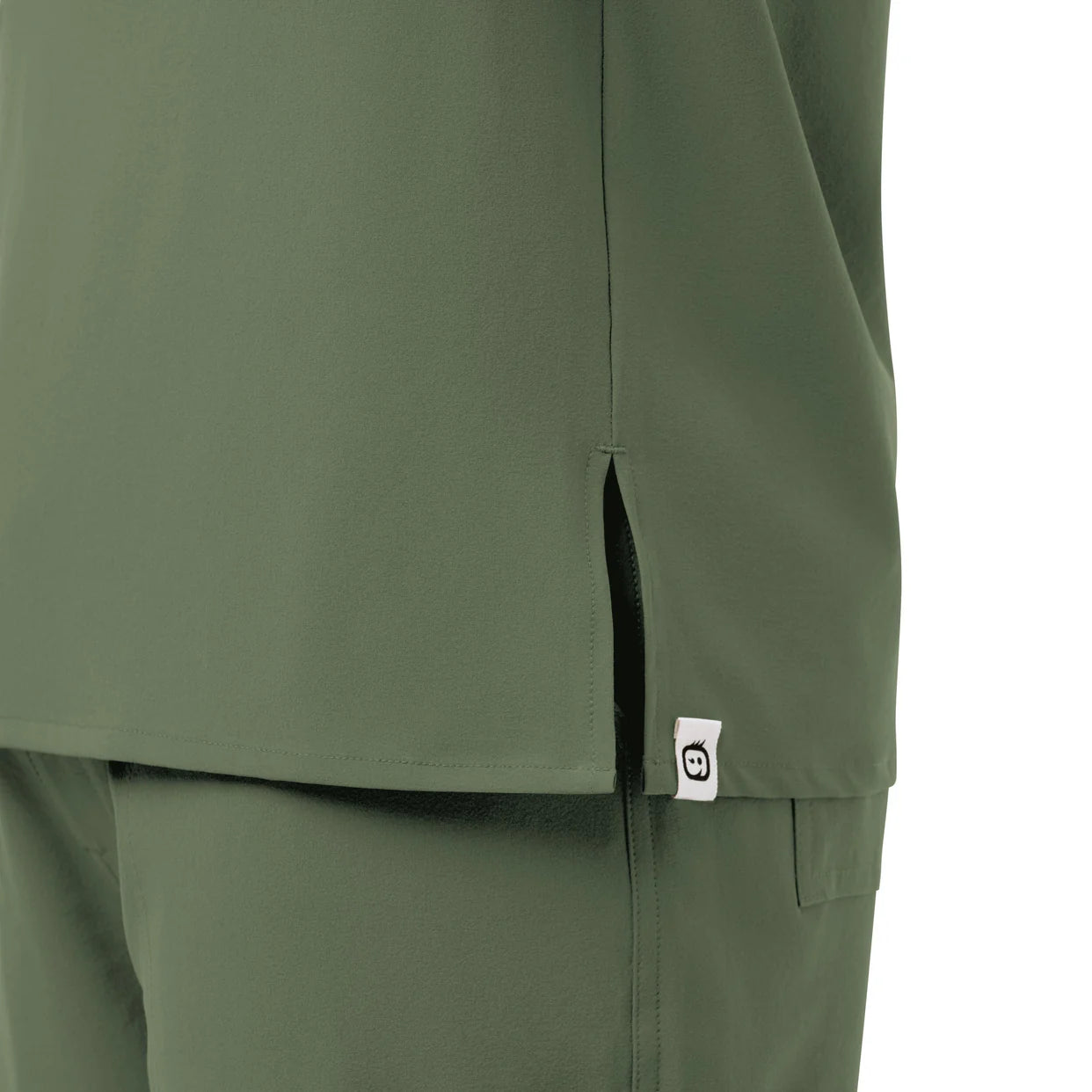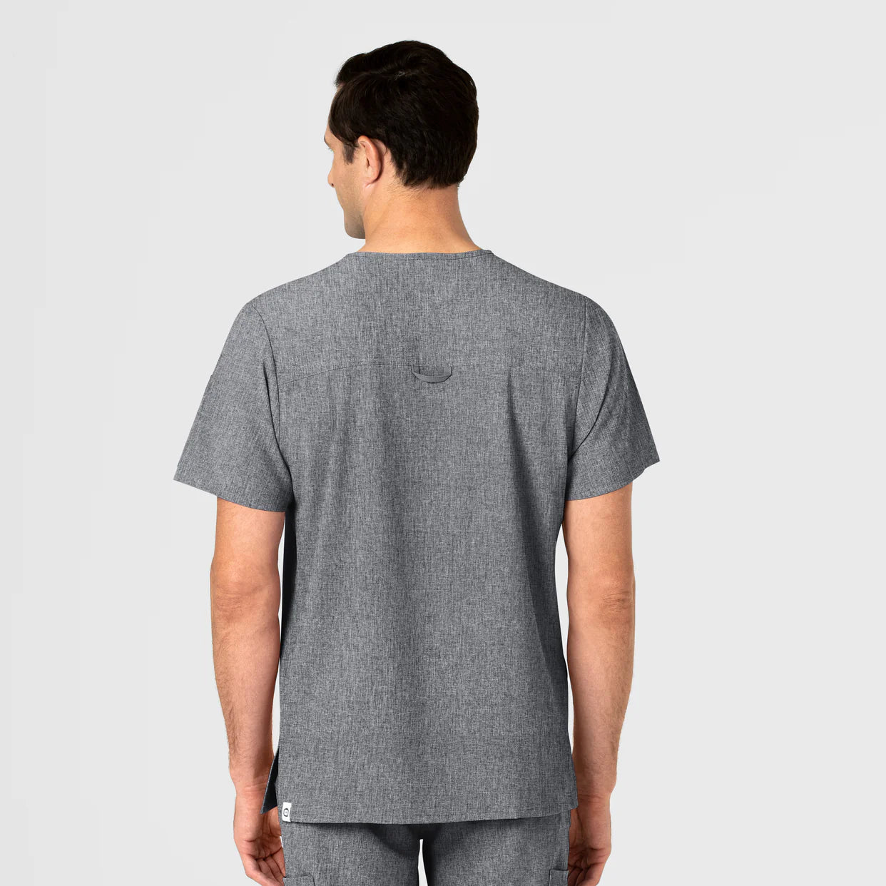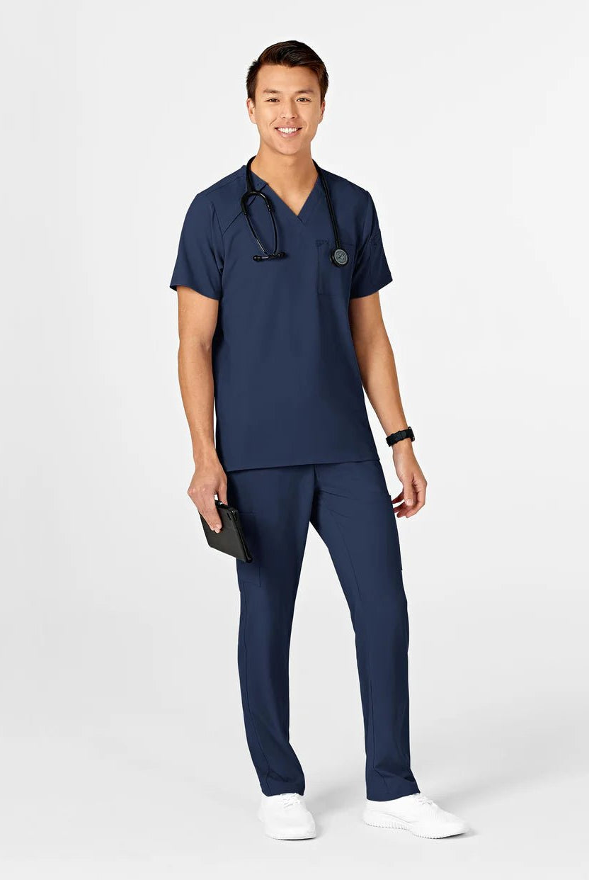 Look masculine and feel great in Wonderwink 6034 Renew Men's EZ Zip Scrub Top. The V-Neck with a hidden zipper opening at the shoulder for easy, minimal contact removal gives a macho look. With a chest pocket with grosgrain trim and a dedicated pen slot, a sleeve pocket on the wearer’s left with an invisible zip closure, and a back yoke with a locker loop and side vents, you get quality with comfort.