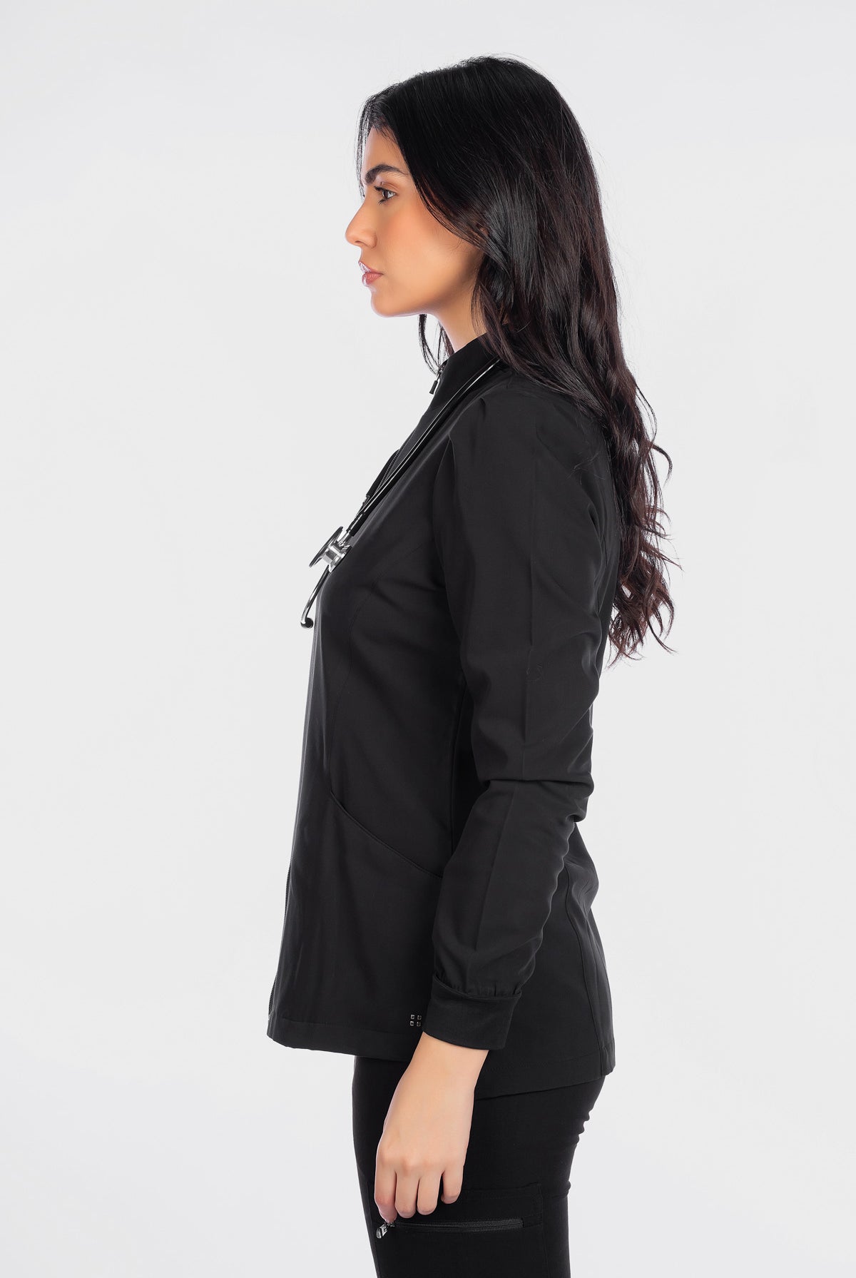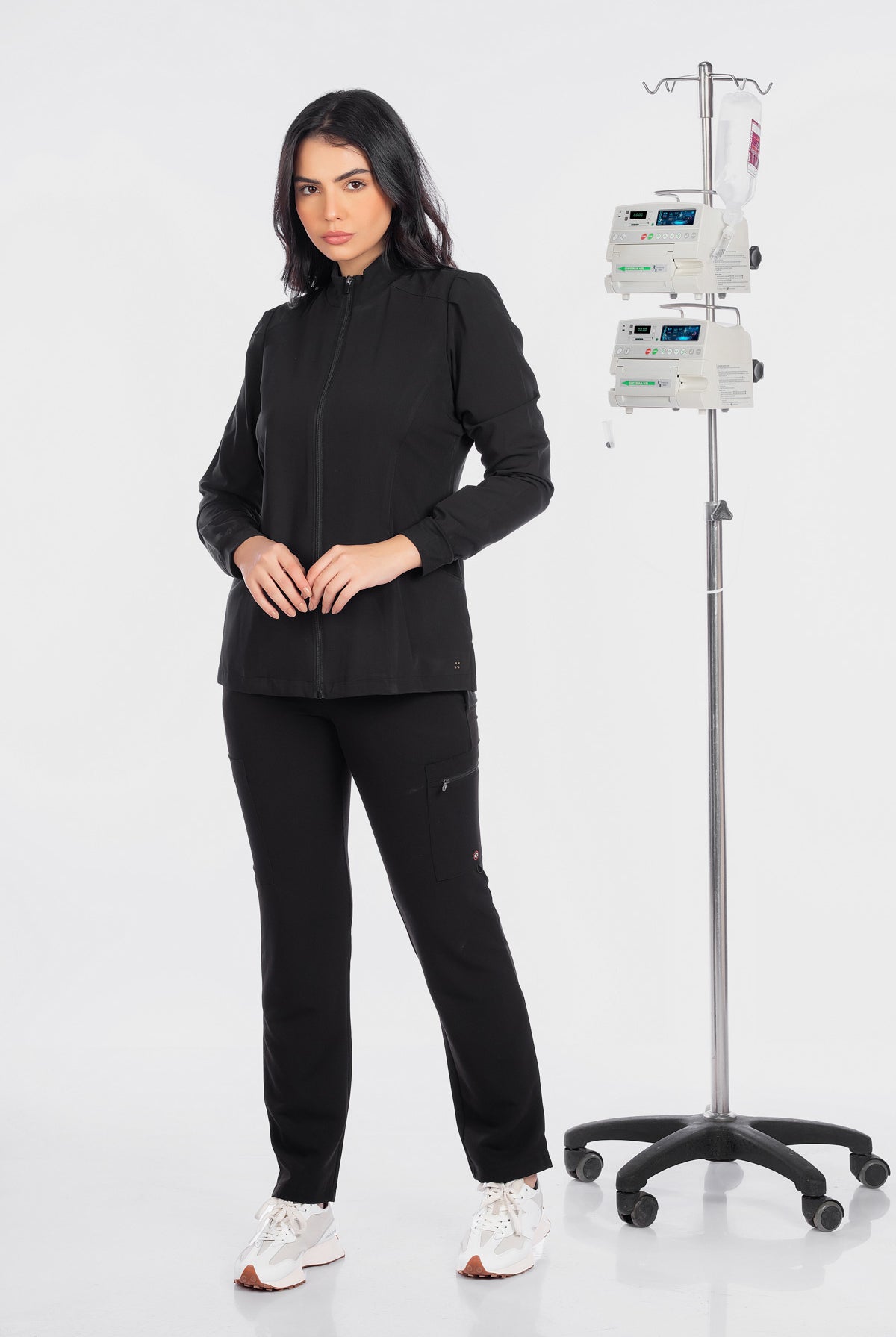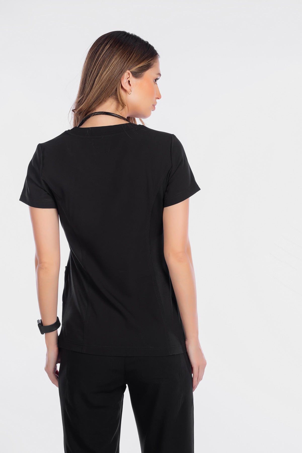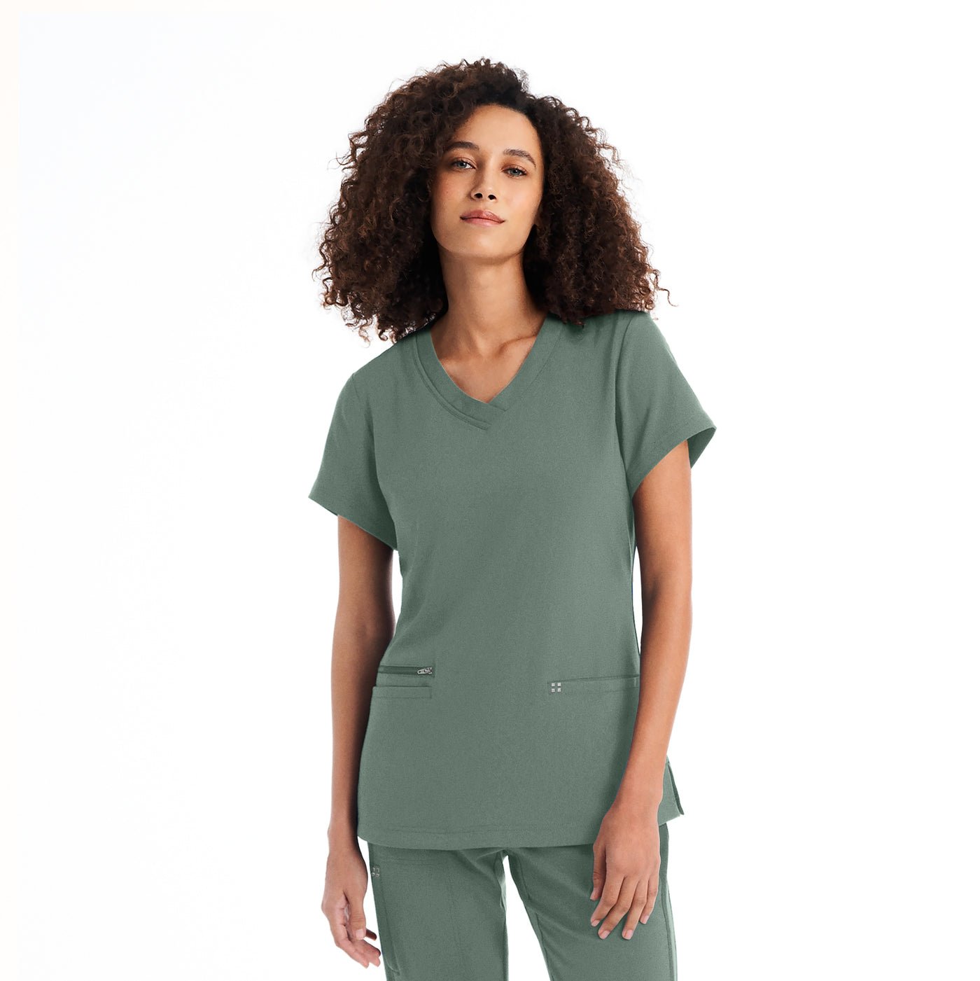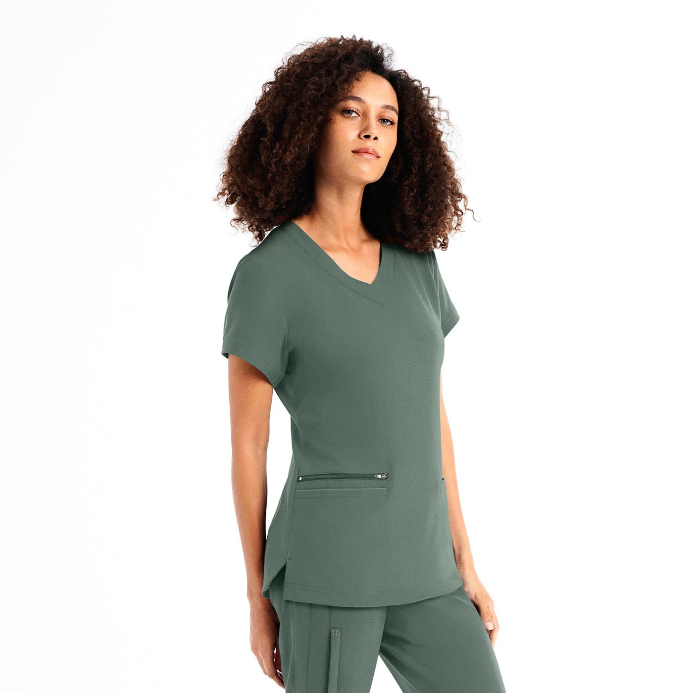 A Modern Fit V-neck top with a piecing detail neckline gives this top an elevated look. Features a single zipper pocket to keep your items secure and 2 welt pockets for easy access to grab anything you may need. Backside knit panels provide extra comfort and movement.