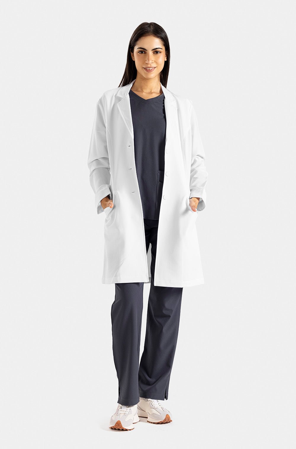 Lab Coat Grey's Anatomy Signature Lab coat Women's featuring 2 front pockets and 2 back vents as well as princess front and back seams, this coat will step up and reboot your look while keeping your belongings secure.